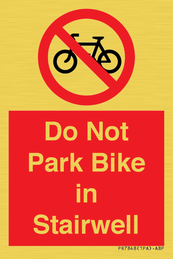 Sign Text: Do Not Park Bike in Stairwell