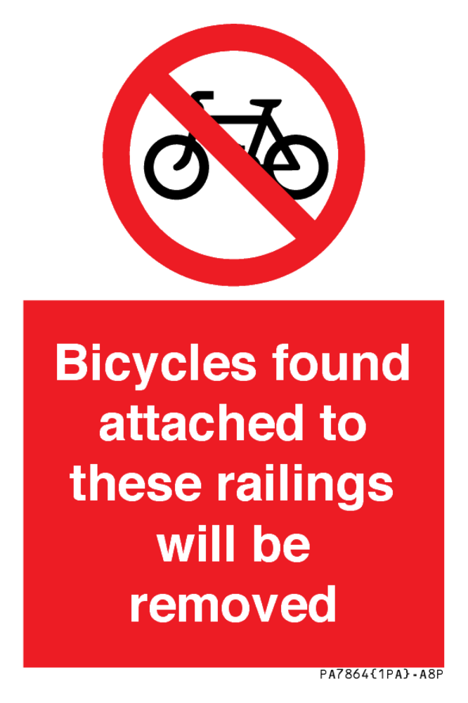 This sign contains a no cycling symbol - bicycle in black with red circle crossed through.