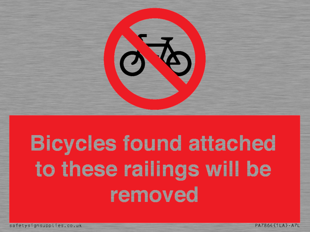 This sign contains a no cycling symbol - bicycle in black with red circle crossed through.