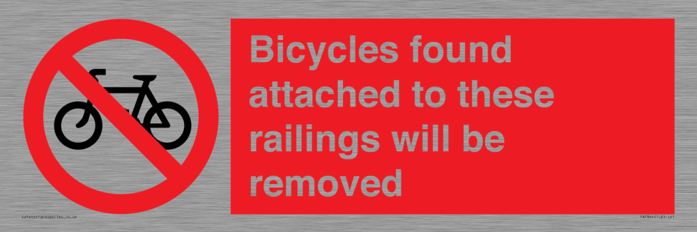 Sign Text: Bicycles found attached to these railings will be removed