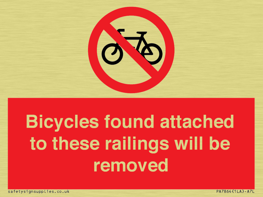 Sign Text: Bicycles found attached to these railings will be removed