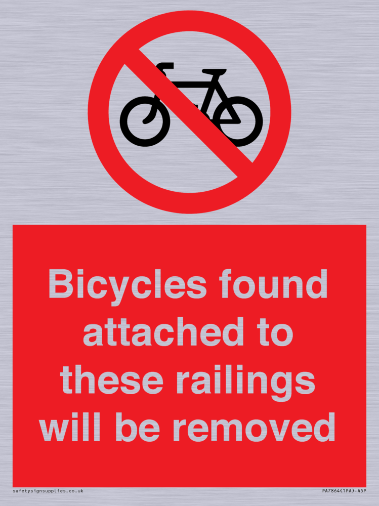 Sign Text: Bicycles found attached to these railings will be removed