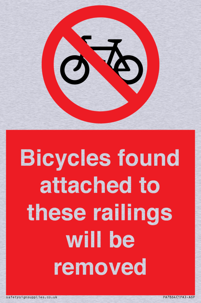 This sign contains a no cycling symbol - bicycle in black with red circle crossed through.