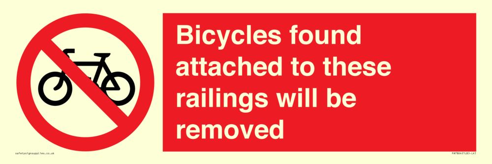This sign contains a no cycling symbol - bicycle in black with red circle crossed through.