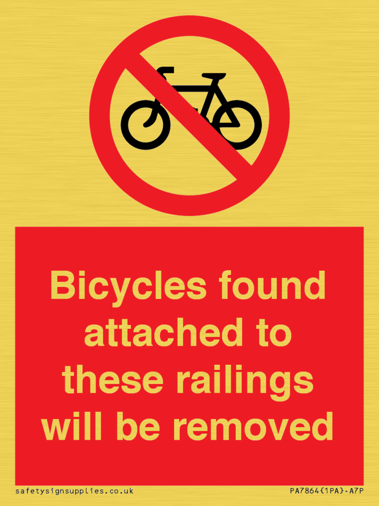 This sign contains a no cycling symbol - bicycle in black with red circle crossed through.