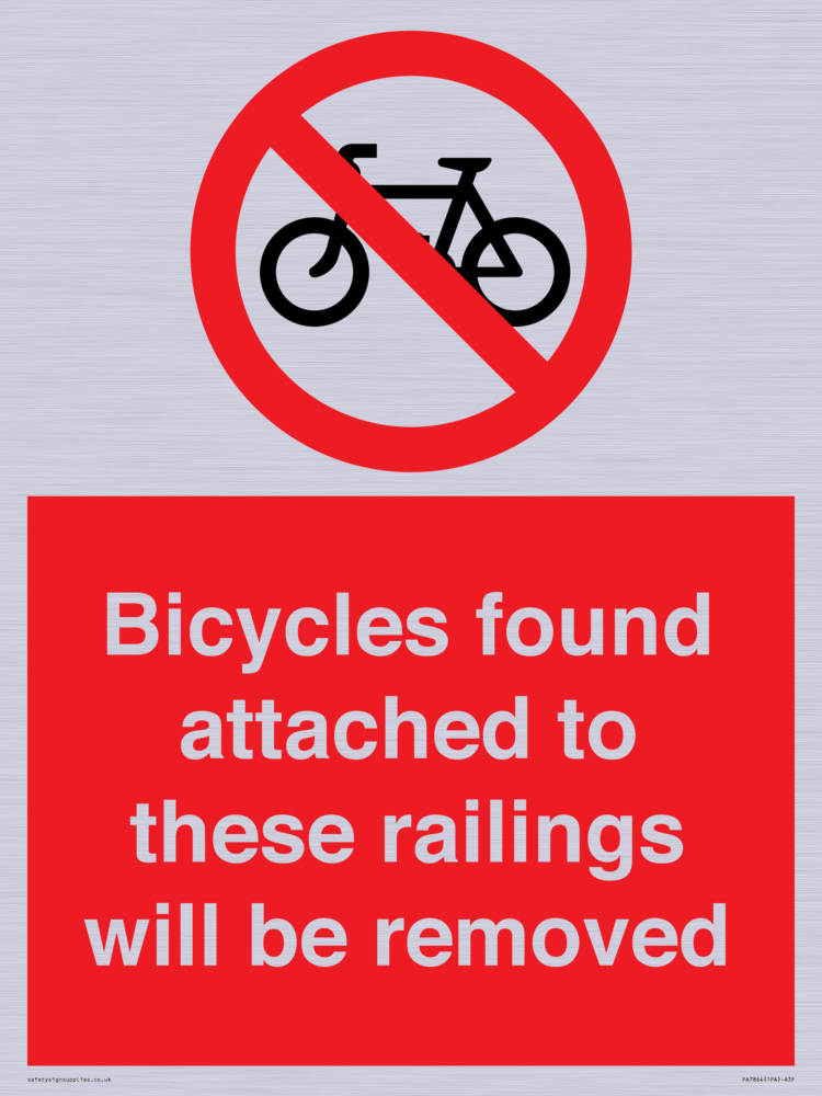 This sign contains a no cycling symbol - bicycle in black with red circle crossed through.