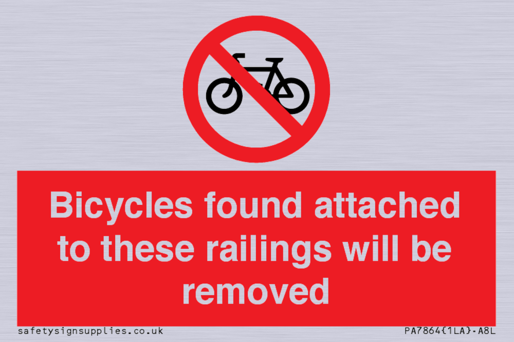 Sign Text: Bicycles found attached to these railings will be removed