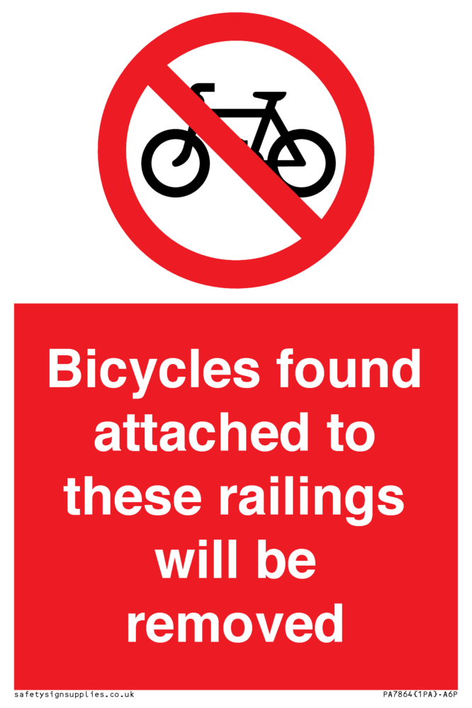 This sign contains a no cycling symbol - bicycle in black with red circle crossed through.