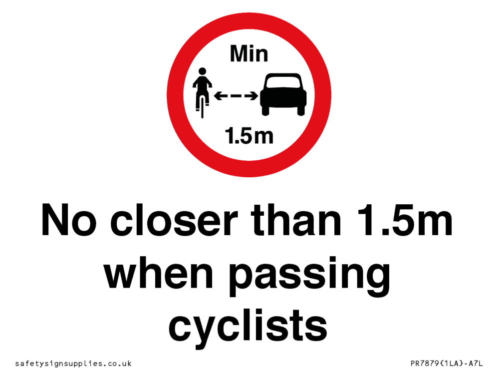 Sign Text: No closer than 1.5m when passing cyclists