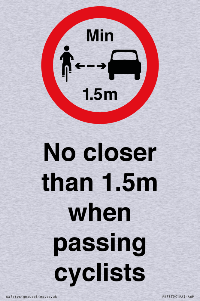 Sign Text: No closer than 1.5m when passing cyclists