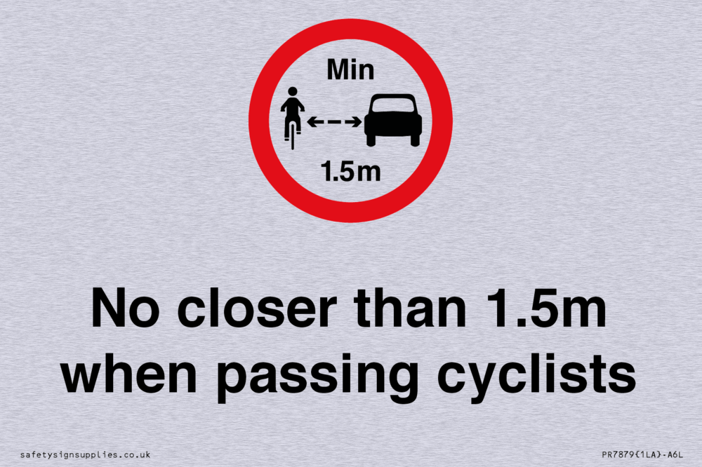 Sign Text: No closer than 1.5m when passing cyclists