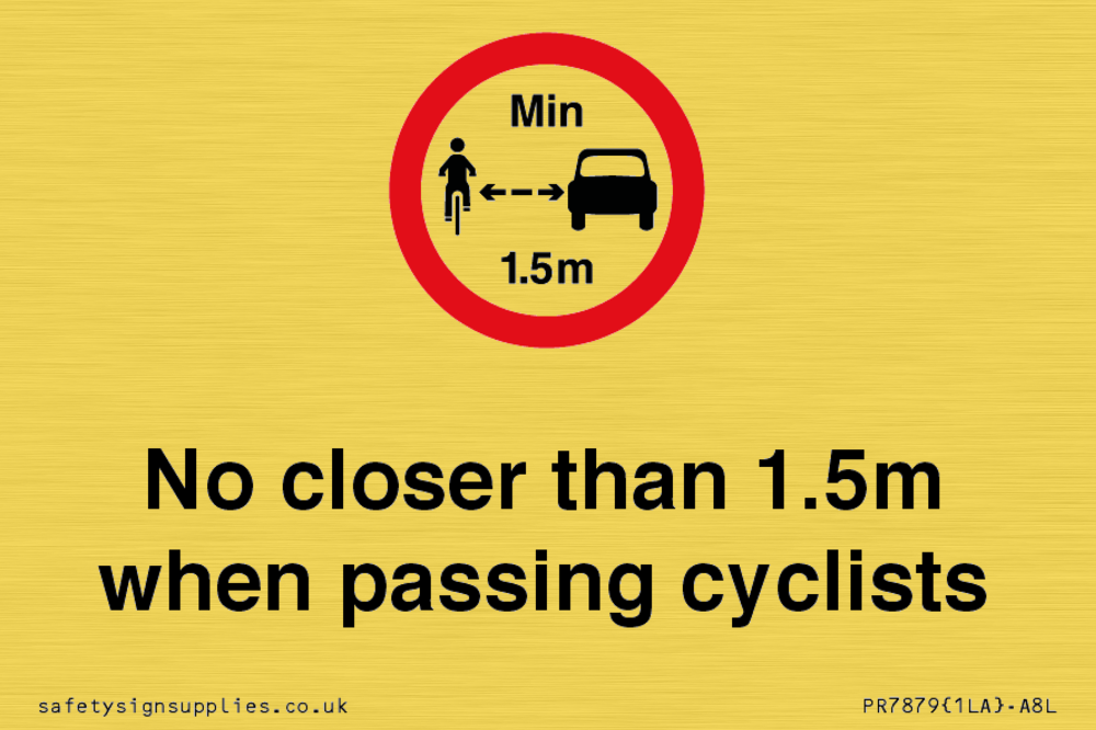 Sign Text: No closer than 1.5m when passing cyclists