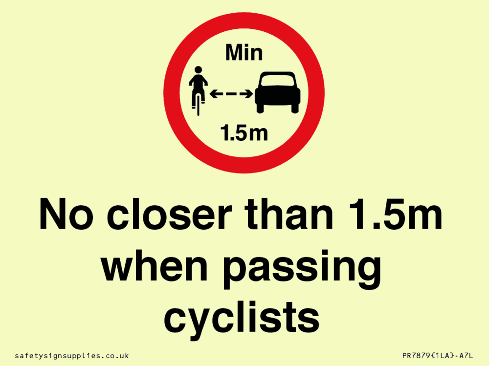 Sign Text: No closer than 1.5m when passing cyclists