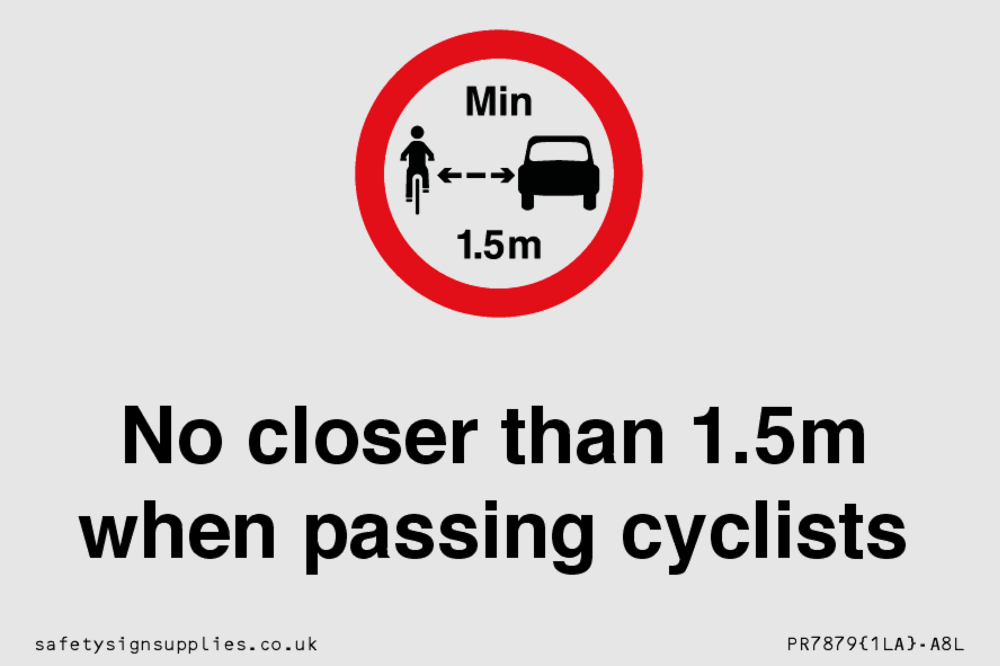 Sign Text: No closer than 1.5m when passing cyclists