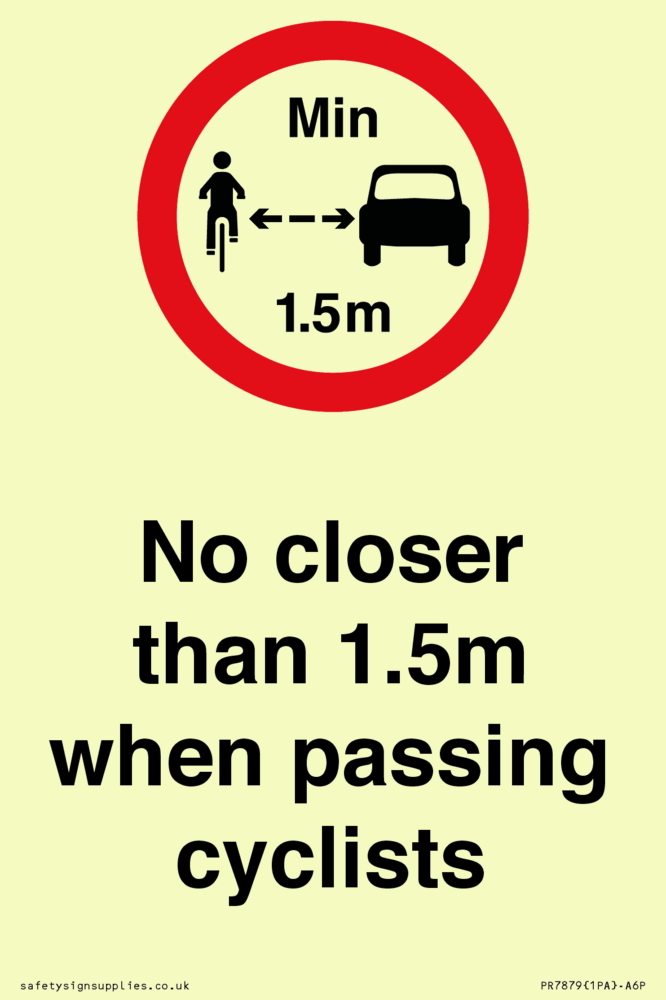 Sign Text: No closer than 1.5m when passing cyclists
