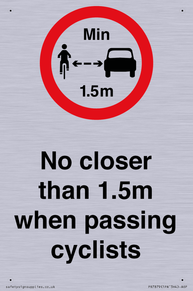 Sign Text: No closer than 1.5m when passing cyclists