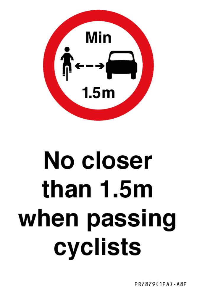 Sign Text: No closer than 1.5m when passing cyclists
