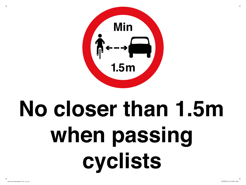Sign Text: No closer than 1.5m when passing cyclists