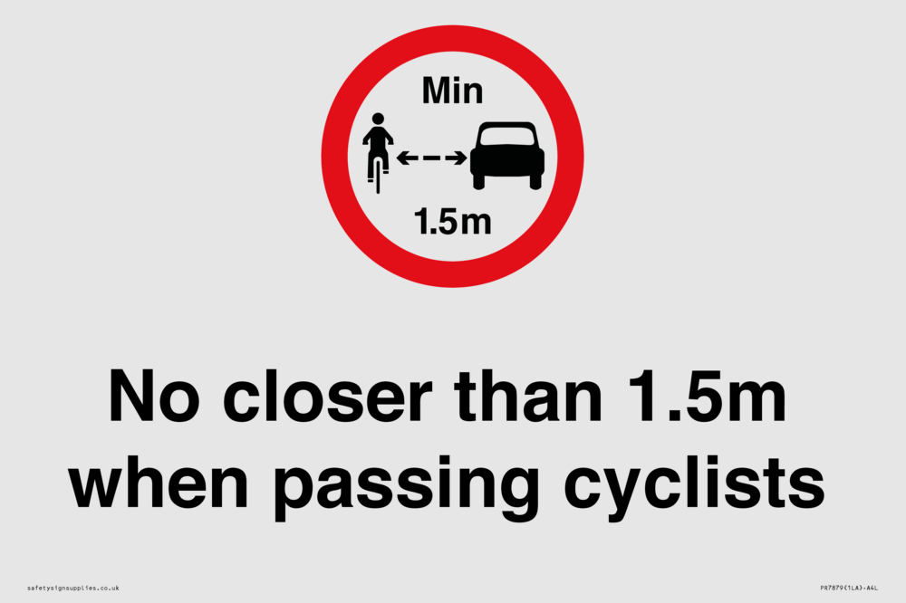 Sign Text: No closer than 1.5m when passing cyclists