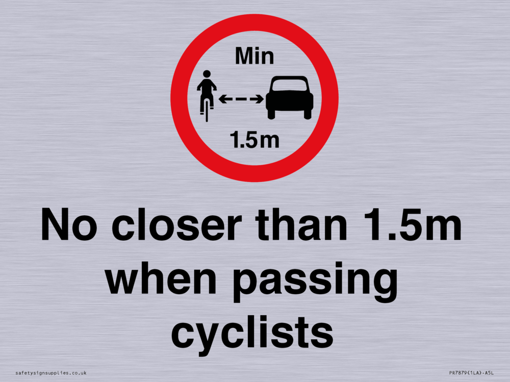 Sign Text: No closer than 1.5m when passing cyclists