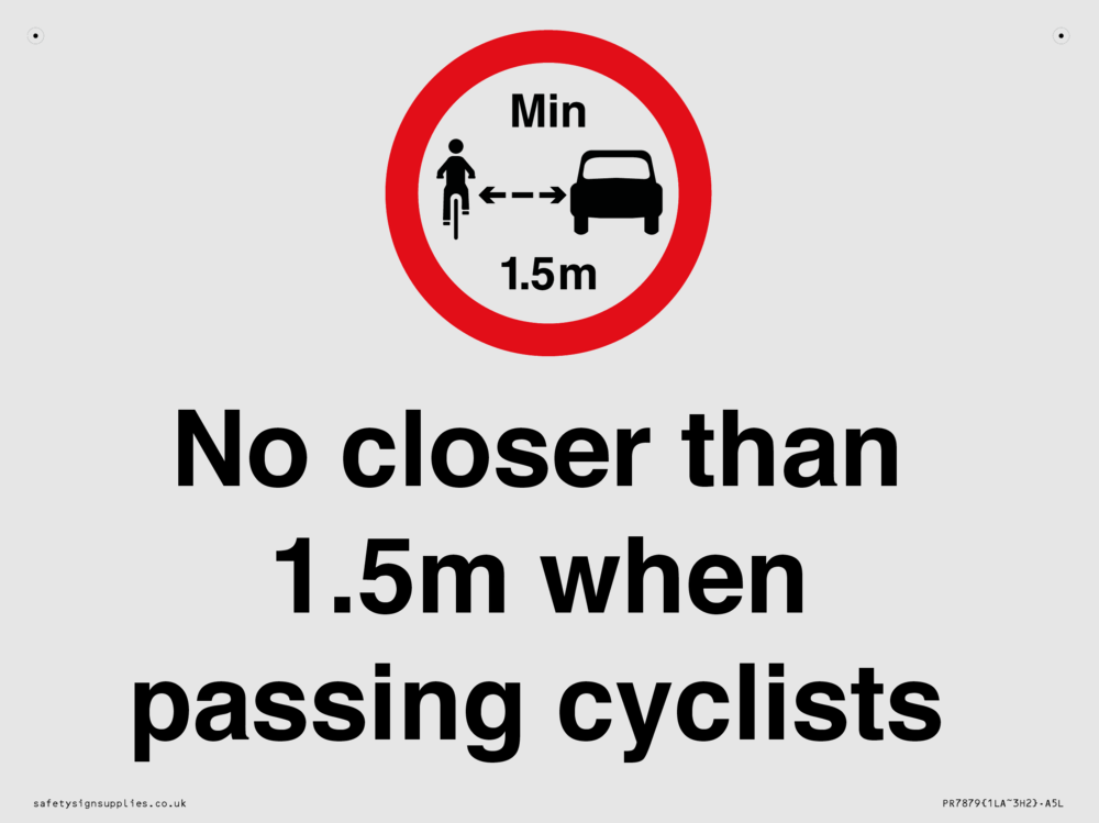 Sign Text: No closer than 1.5m when passing cyclists