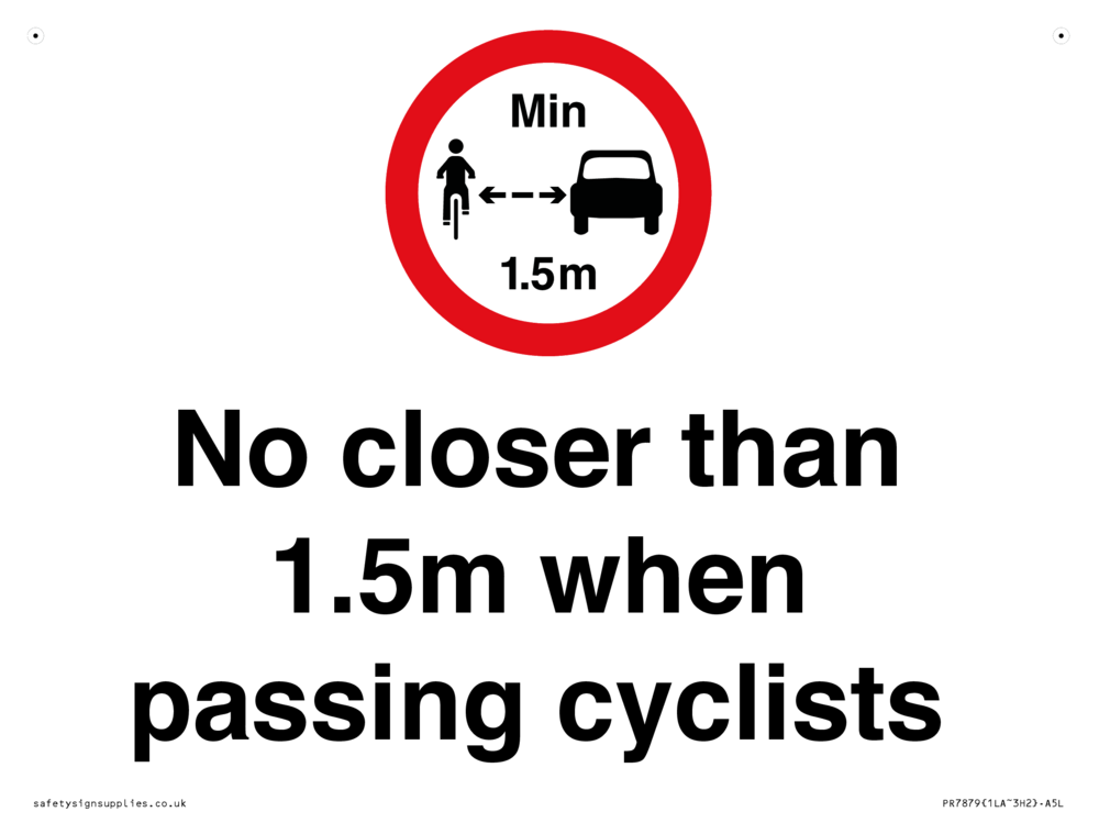 Sign Text: No closer than 1.5m when passing cyclists