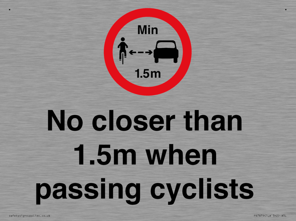 Sign Text: No closer than 1.5m when passing cyclists