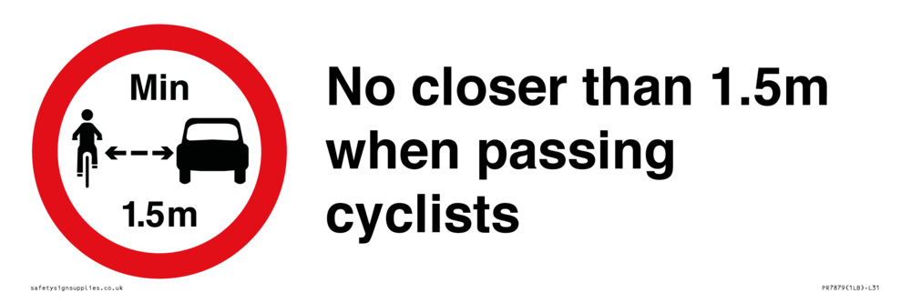 Sign Text: No closer than 1.5m when passing cyclists