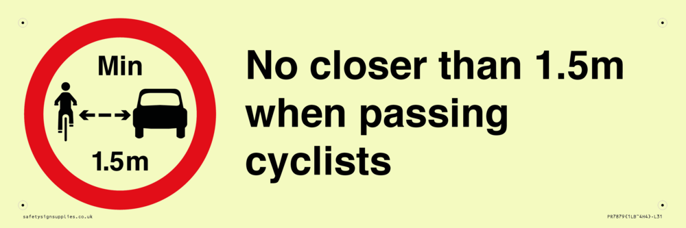 Sign Text: No closer than 1.5m when passing cyclists