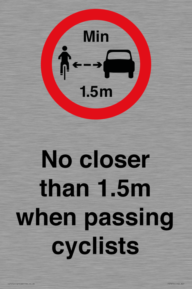 Sign Text: No closer than 1.5m when passing cyclists