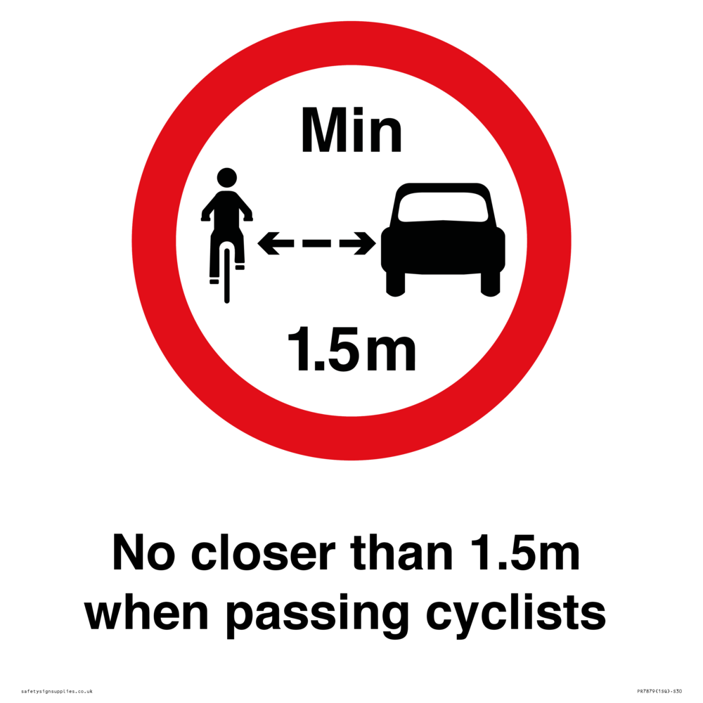 Sign Text: No closer than 1.5m when passing cyclists