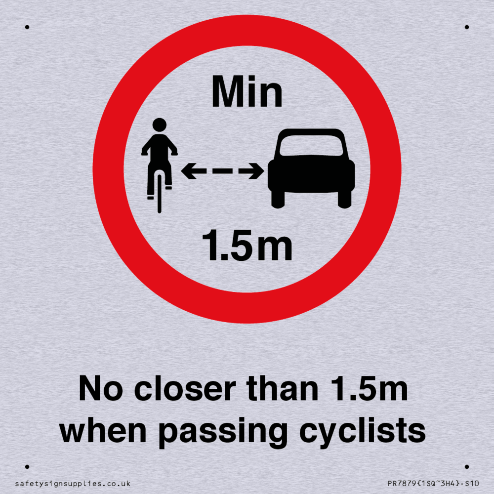 Sign Text: No closer than 1.5m when passing cyclists