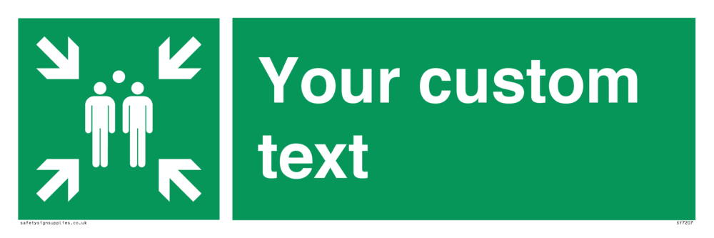 Suitable for mounting on a flat surface. Suitable for mounting on a door. Suitable for mounting on cladding. This product is design to be mounted on the ceiling. Custom signs contain the text required by the customer. With your your text and a standard safety sign symbol - a bespoke sign can fit any requirement.