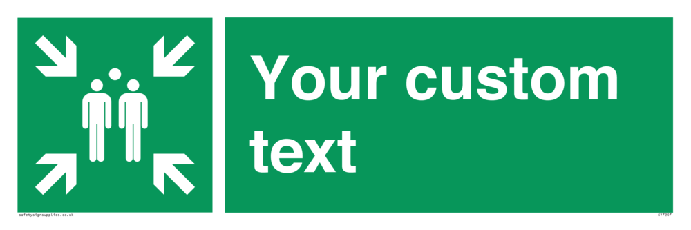 Suitable for mounting on a flat surface. Suitable for mounting on a door. Suitable for mounting on cladding. This product is design to be mounted on the ceiling. Custom signs contain the text required by the customer. With your your text and a standard safety sign symbol - a bespoke sign can fit any requirement.