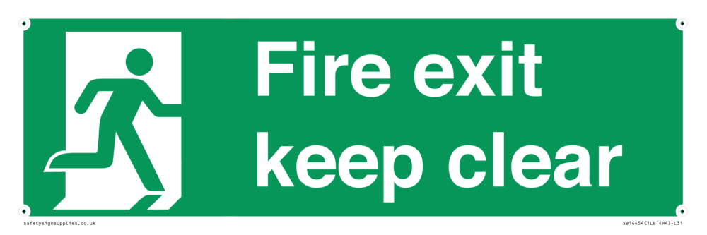 Sign Text: Fire exit keep clear