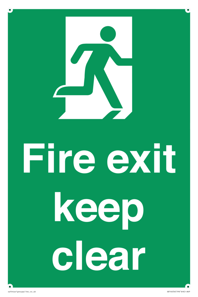Sign Text: Fire exit keep clear