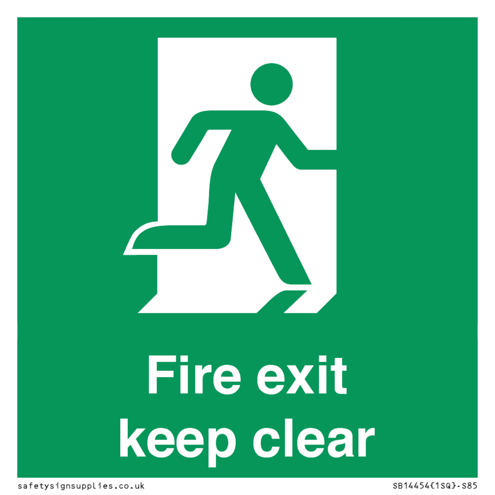 Sign Text: Fire exit keep clear