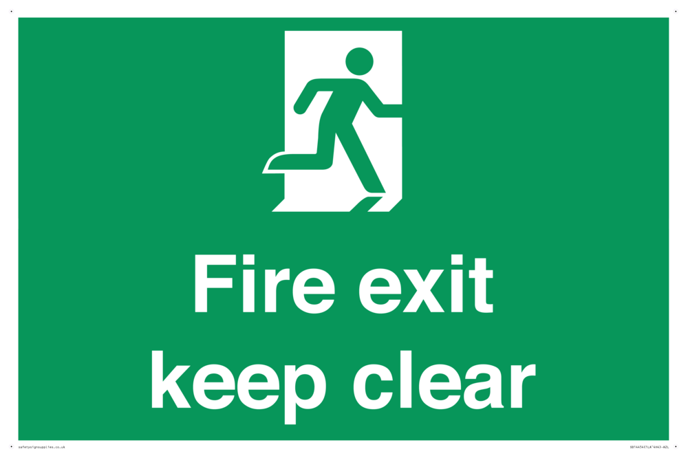 Sign Text: Fire exit keep clear