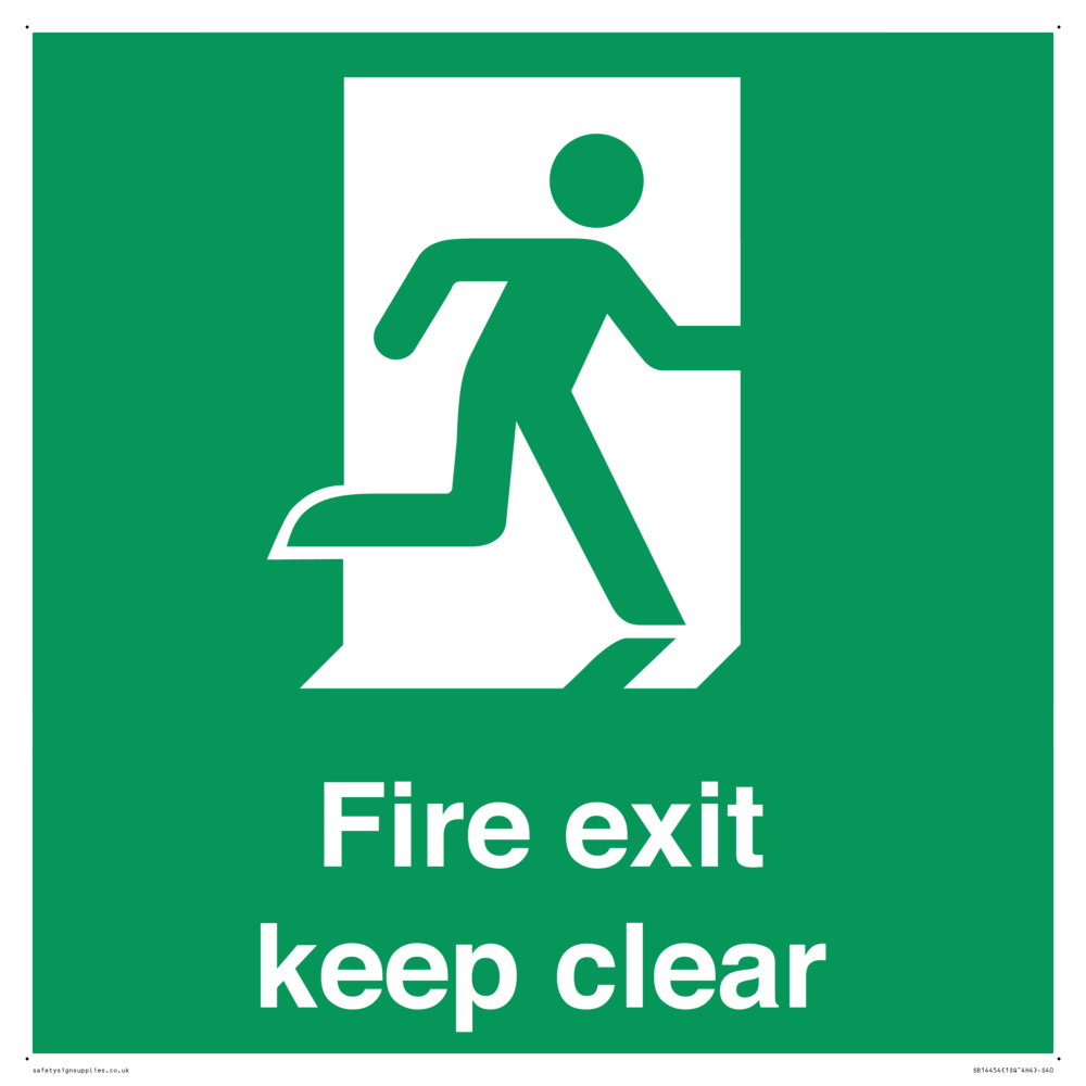 Sign Text: Fire exit keep clear