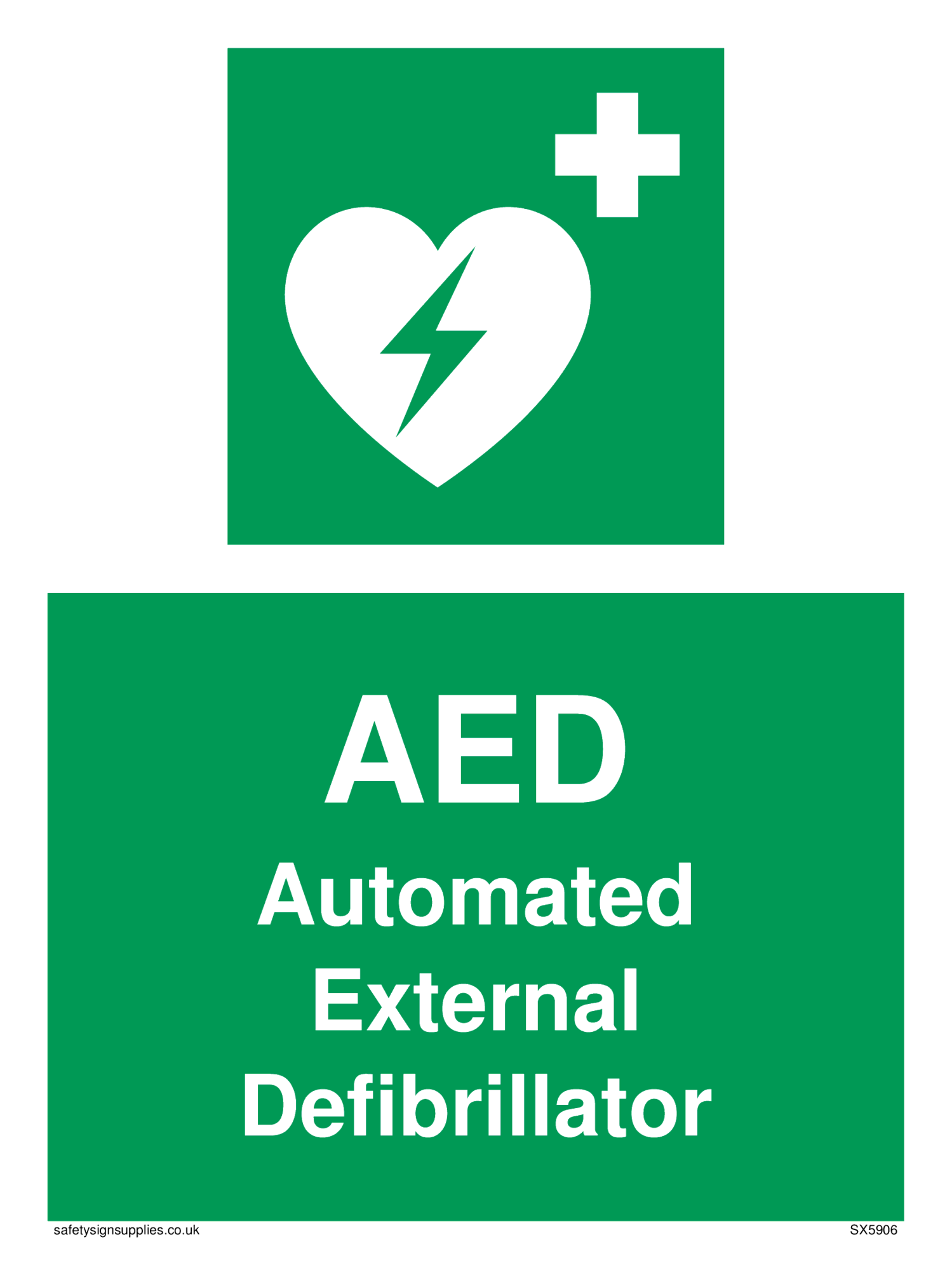 ISO 7010-E010 Safe Condition: Automated external heart defibrillator