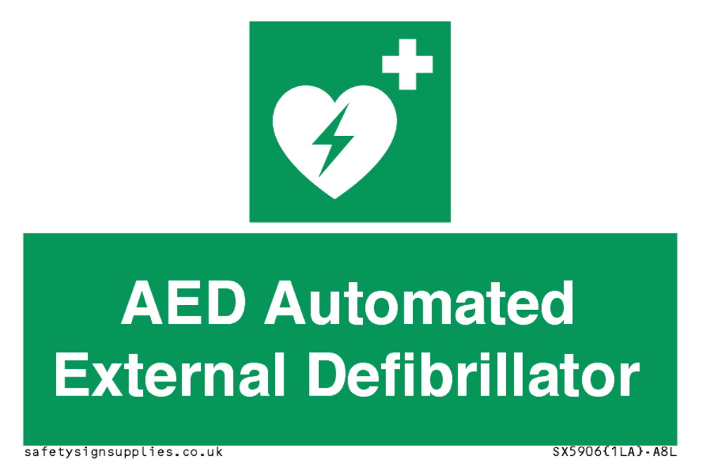 ISO 7010-E010 Safe Condition: Automated external heart defibrillator