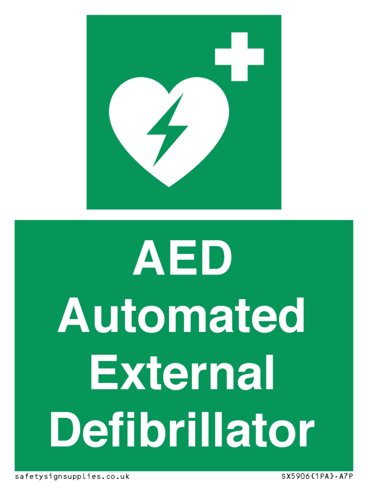 ISO 7010-E010 Safe Condition: Automated external heart defibrillator