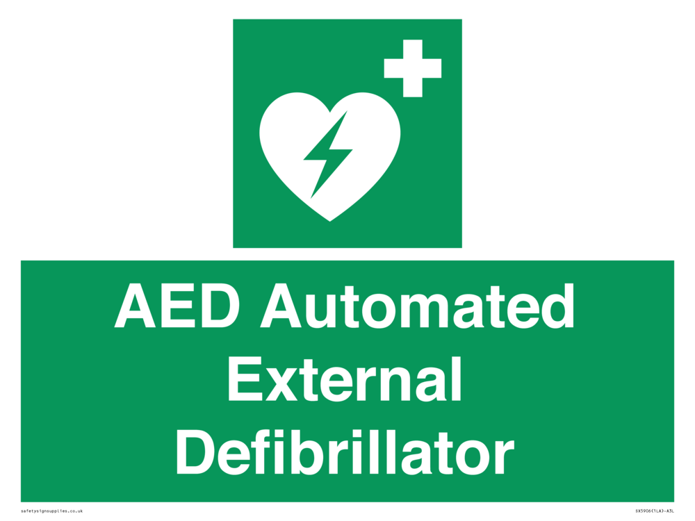 ISO 7010-E010 Safe Condition: Automated external heart defibrillator