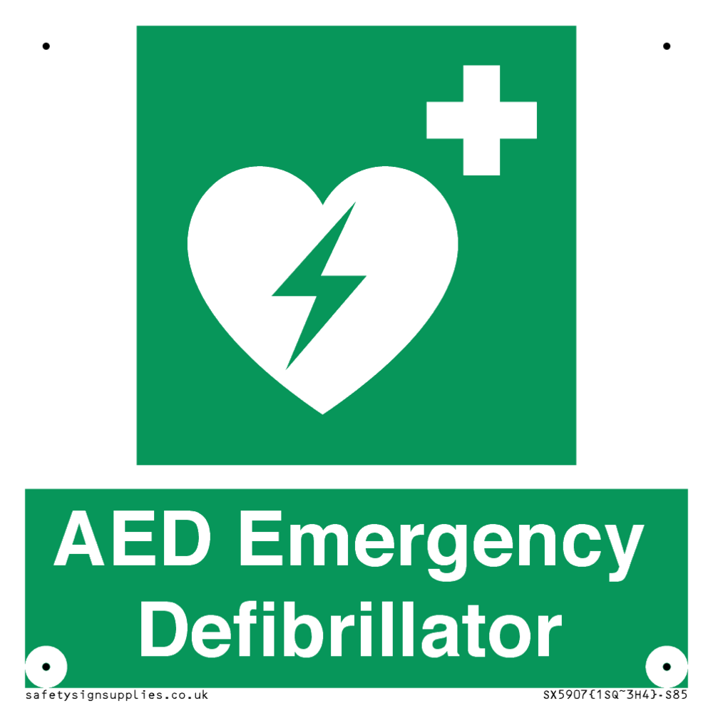 Sign Text: AED Emergency Defibrillator Dimensions: 85x85mm Material: Plastic Semi-rigid 1mm Orientation: Square Text Colour: White Background Colour: Green More...