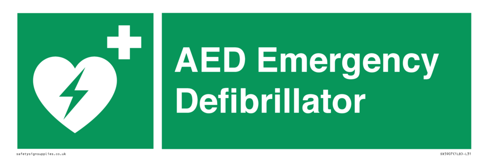 Sign Text: AED Emergency Defibrillator Dimensions: 300x100mm Material: Plastic Semi-rigid 1mm Text Colour: White Background Colour: Green Recommended Fixings: Budget Hanging Kit More...