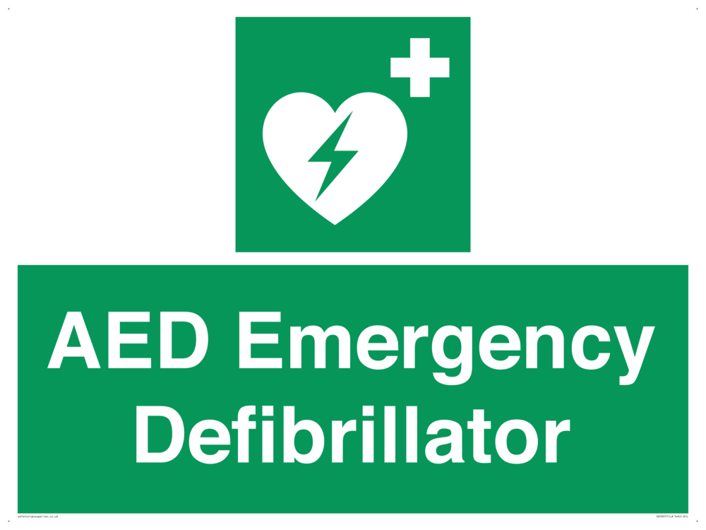 Sign Text: AED Emergency Defibrillator Dimensions: 800x600mm Material: Plastic Rigid 3mm Orientation: Landscape Text Colour: White Background Colour: Green More...
