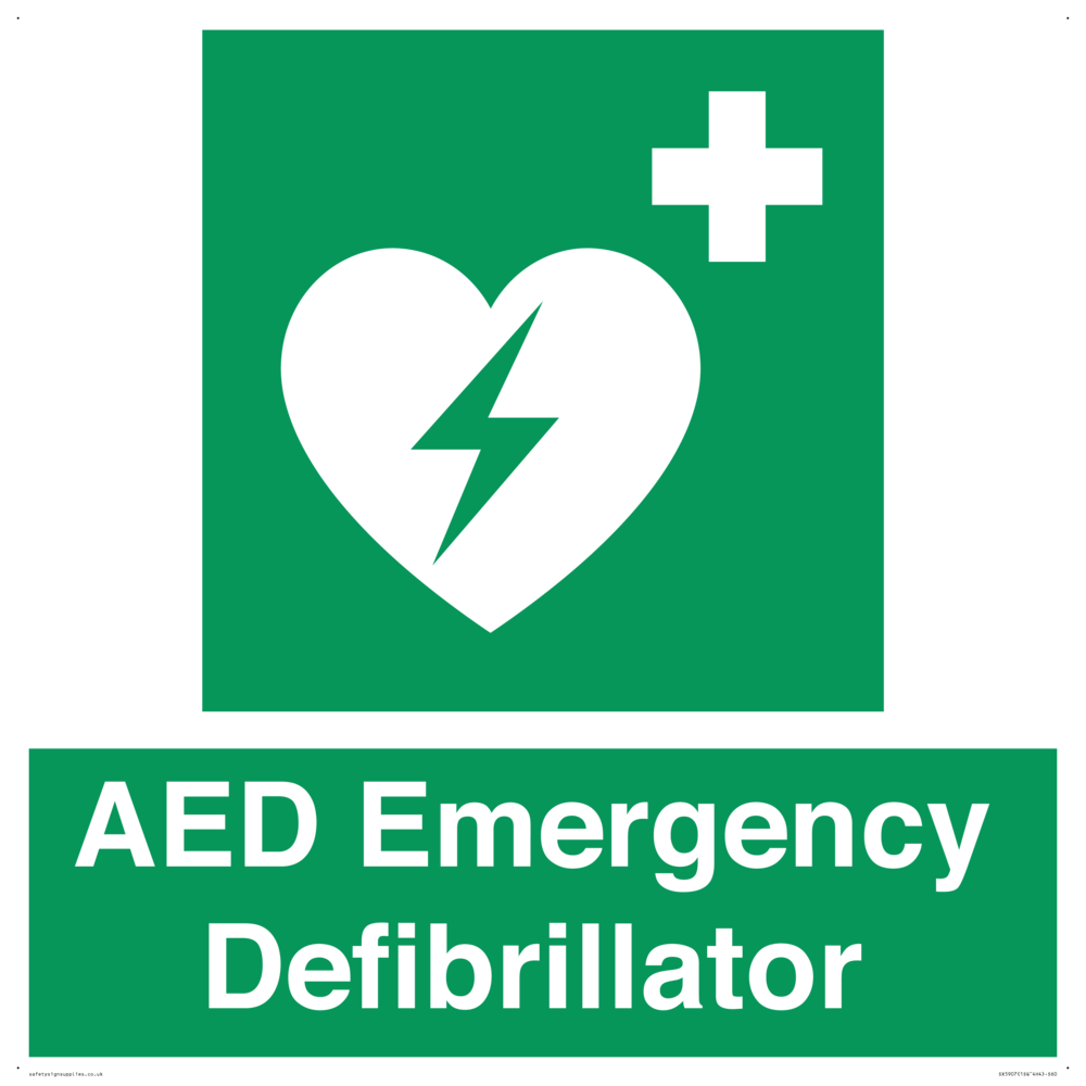 Sign Text: AED Emergency Defibrillator Dimensions: 600x600mm Material: Plastic Rigid 3mm Orientation: Square Text Colour: White Background Colour: Green More...