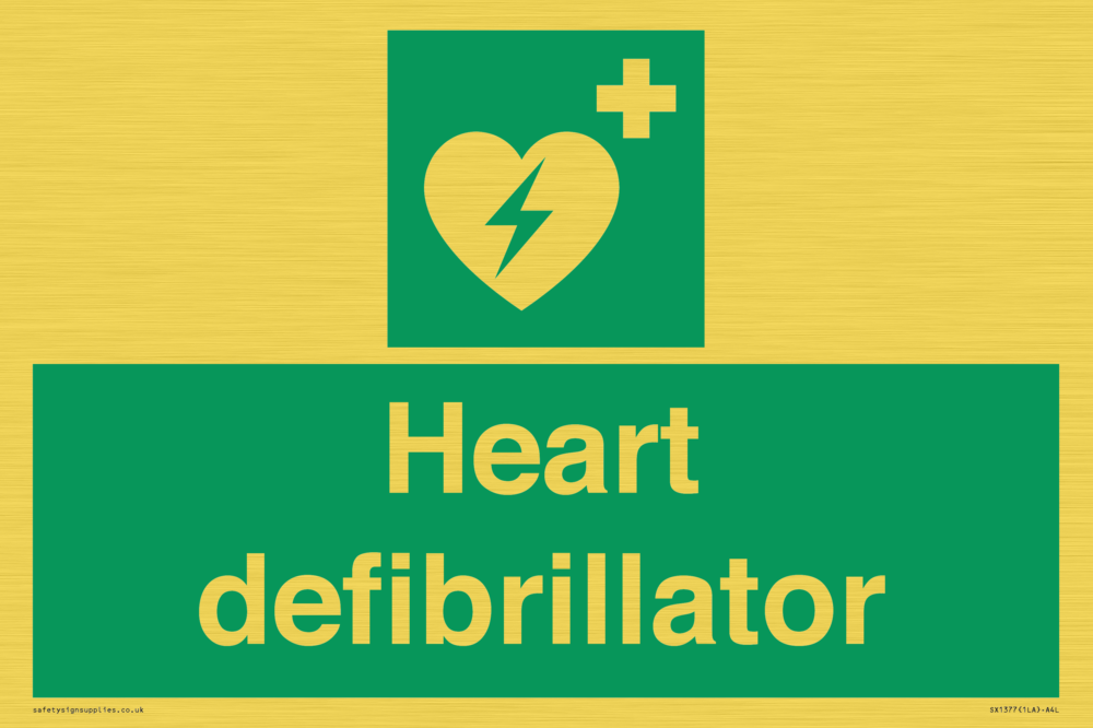 Sign Text: Heart defibrillator
