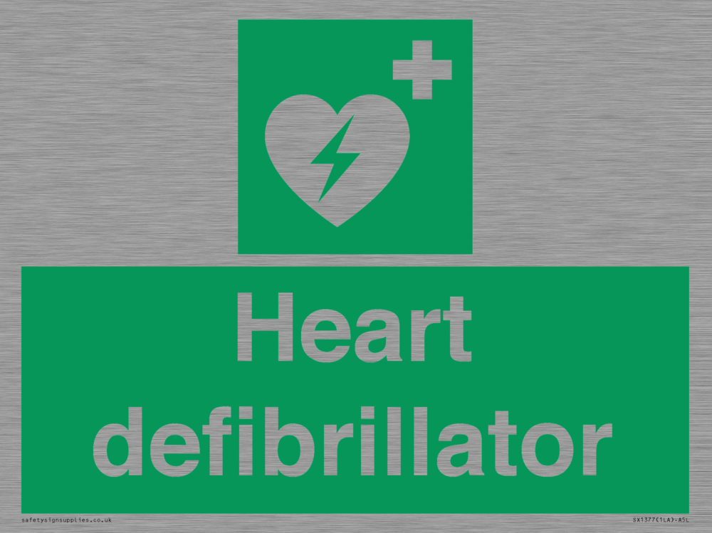 Sign Text: Heart defibrillator