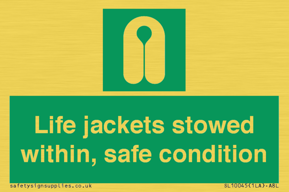 Sign Text: Life jackets stowed within